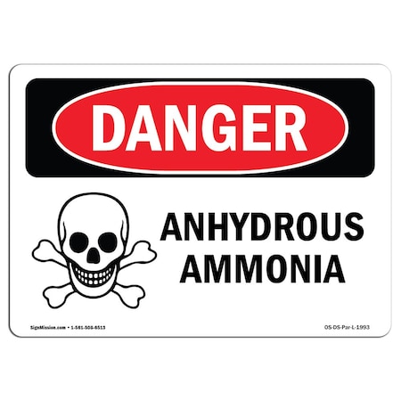 OSHA Danger Sign, Anhydrous Ammonia, 18in X 12in Rigid Plastic