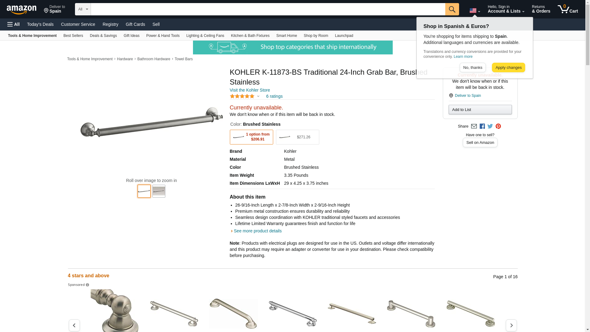 The KOHLER Traditional grab bar offers both safety and enhanced styling. This grab bar makes it easy to adapt a bathroom to meet the needs of any user. It provides a pleasing design appeal to coordinate with your decor beautifully. It's the essential item for your bathroom to ensure support and assurance when entering or exiting your bath or shower.