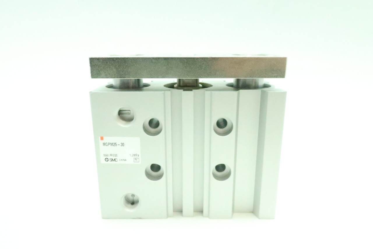 SMC MGPM25-30 Aluminum Air Cylinder with Guide Rod Plate, Slide Bearing, Compact, Double Acting, Switch Ready, Rubber Cushion, 25 mm Bore OD, 30 mm Stroke, 12 mm Rod OD, 1/8" BSPT