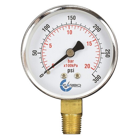 CARBO Instruments 2-1/2" Pressure Gauge, Chrome Plated Steel Case, Dry, 0-300 psi/kPa, Lower Mount 1/4" NPT