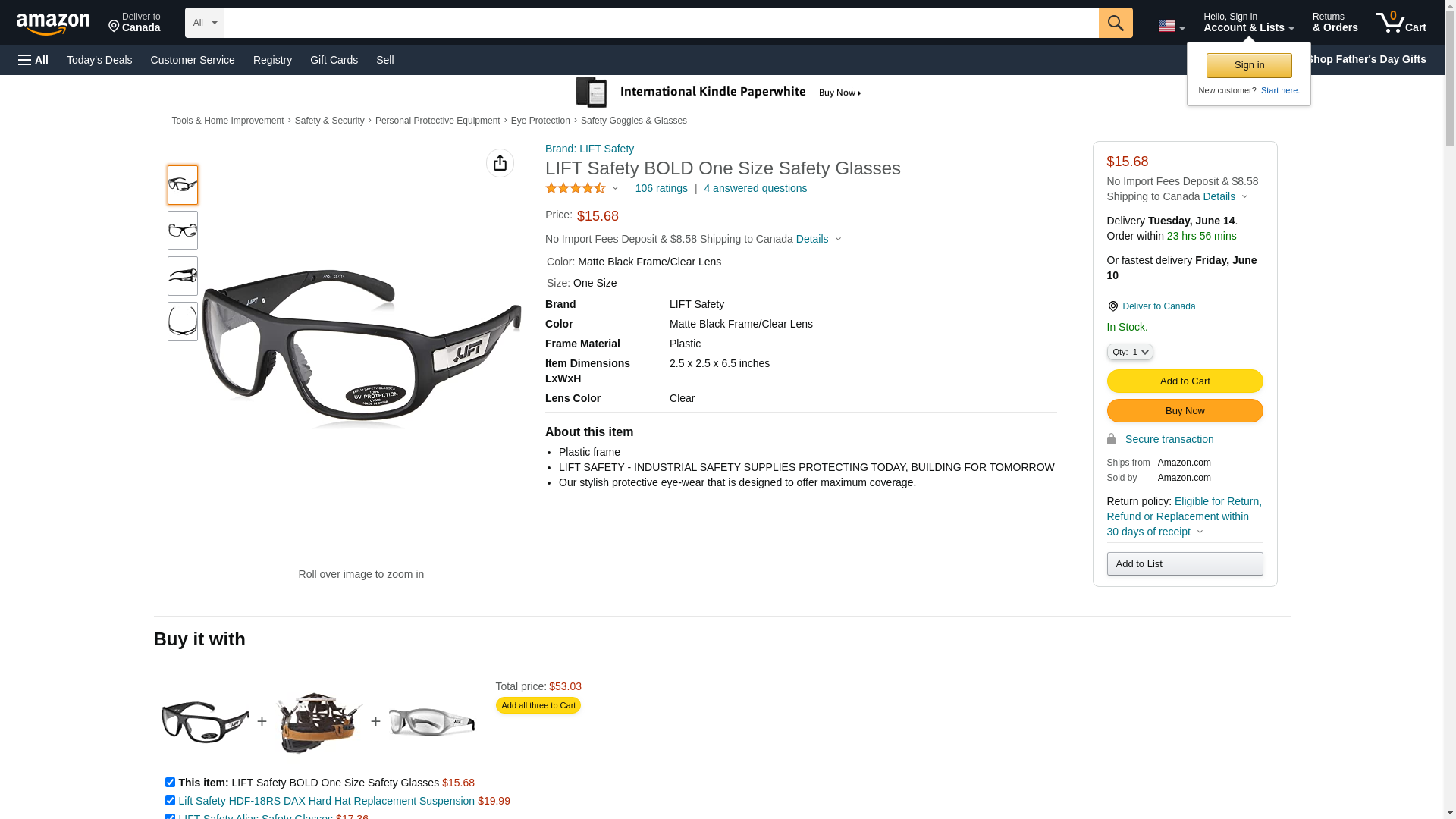 LIFT Safety EBD-14MKST BOLD One Size Safety Glasses (Matte Black Frame/Smoke Lens)