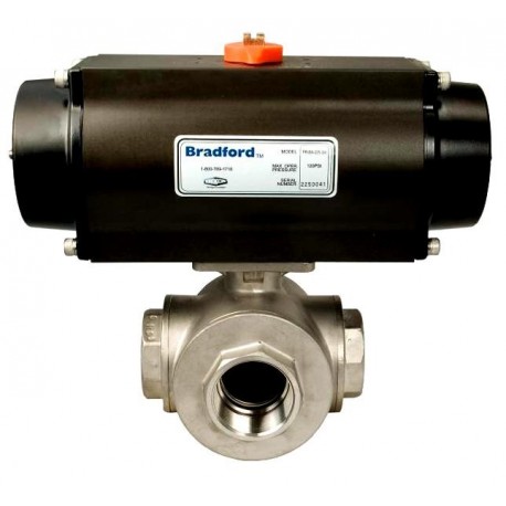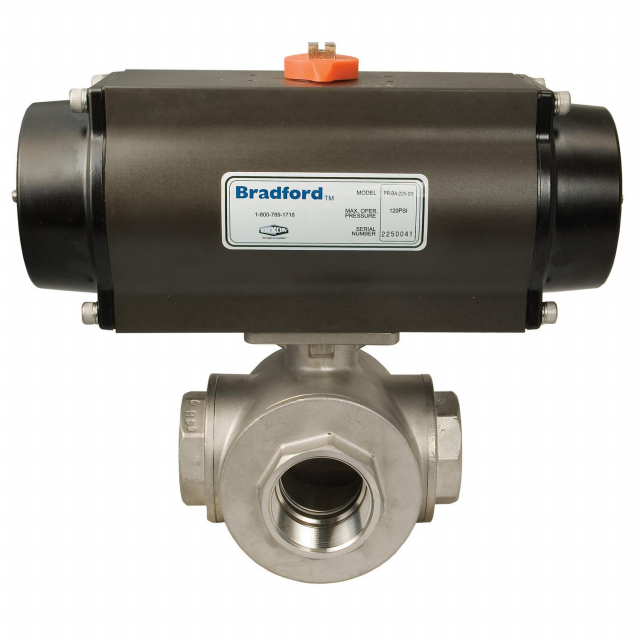 - Pneumatically Actuated 3-Way Stainless Ball Valve