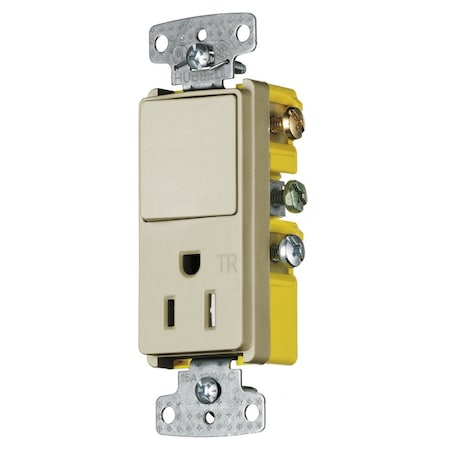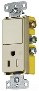 Hubbell Wiring Devices Combo Dec, 15A Sp&15A125V Rcpt Tr, Iv - RCD108ITR