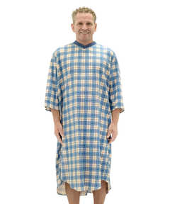 Silverts 501211603 Mens Flannel Open Back Adaptive Hospital Patient Gowns with Back Snap - Eggshell Plaid, 3XL
