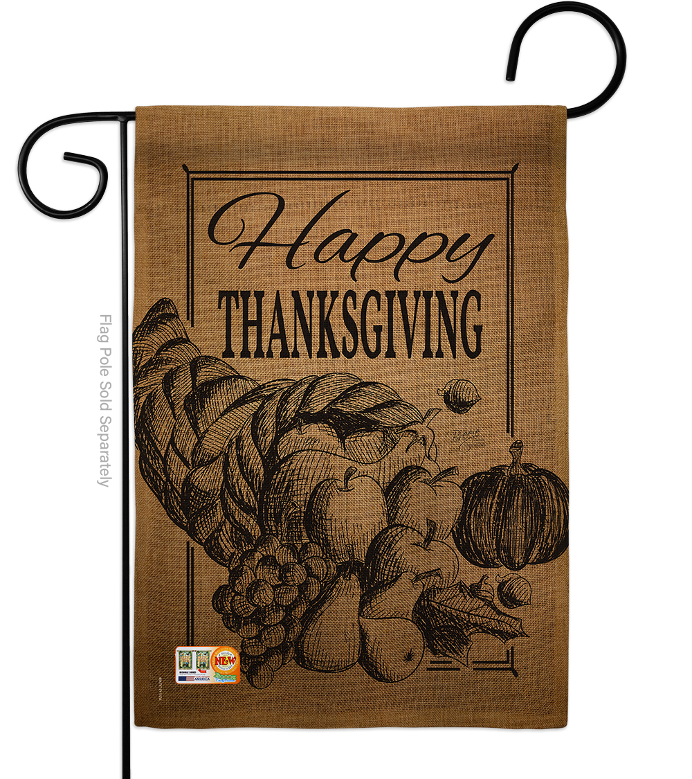 Thanksgiving Beautiful Mini Garden Flag Breeze Decor have variety of Garden Flag for all occasions Uniquely design for hanging indoor or outdoor use We are committed to offering you exceptional values Our customers enjoy displaying our Garden Flag for longer periods For more than a decade weve been dedicated to manufacturing flags with no comparison in quality and beautiful designs Our flags are made with our Pro Guard material that is soft to the touch and designs can be read correctly on the flag A feature that our customers will love We are committed to using ecofriendly inks that wont leave a foot print in our environment Specifications. Theme Thanksgiving. Material Weather Resistant Double Burlap. Print DoubleSided. Readable Readable Both Sides. Stitching Double Stitched. Display Vertical. Hang Type Sleeve. Artist Schal Lee. Country of Origin Printed In USA. Garden Flag Size 13 x 185. Weight 017 lbs
