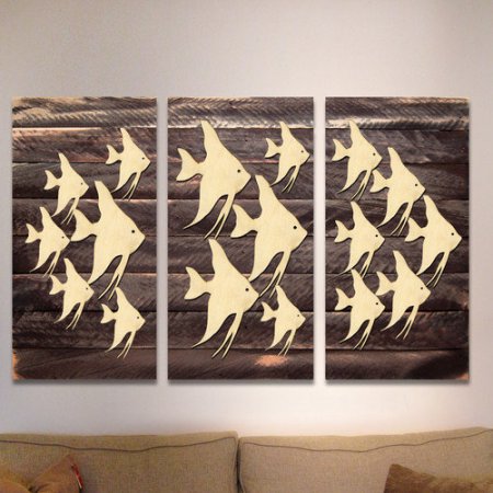 G DeBrekht 98537-B3-39 Vintage Fishes Wooden Decorative Wall, Multicolor - 3 Piece