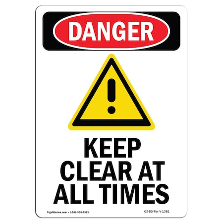 OSHA Danger Sign, Keep Clear At All Times, 5in X 3.5in Decal