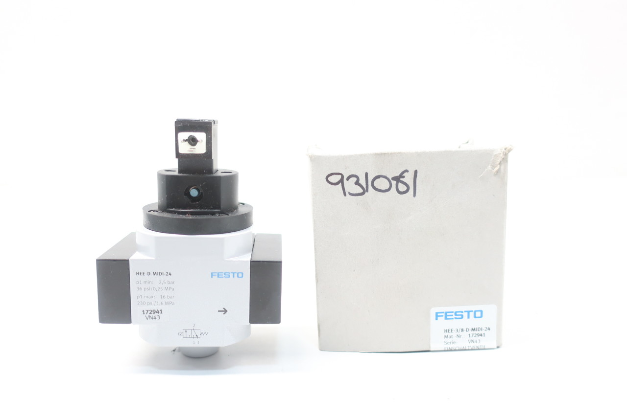 Festo Hee-3/8-D-Midi-24, Shut Off Valve, P1 Min: 2,5 Bar, 36 Psi/0,25 Hee-3/8-D-Midi-24