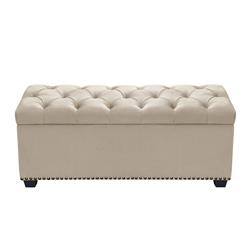 The Majestic Tufted Storage Trunk by Diamond Sofa offers a chic addition to your living space. This complimentary piece will allow your space to stay organized and stylish at the same time. Made with a sturdy hardwood construction, covered and tufted in a Tan Velvet fabric with Nail Head Accents. Dual tension hinge on the lift-top. Use in any room for any purpose, a great way to provide additional seating or storage.FeaturesTufted Lift-Top Storage TrunkFinished in Tan Velvet with Nail Head Accent TrimProvides Space Conscious Seating or Storage, Interior Dimensions: 44"x14"x13"Dual Tension Hinges for the LidEspresso Wood FootColor: TanMaterial: FabricProduct Size: 48.25 x 18.25 x 19.75Assembly Required: NoMade In China
