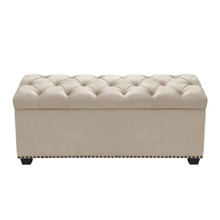 - The Majestic Tufted Storage Trunk by Diamond Sofa offers a chic addition to your living space. This complimentary piece will allow your space to stay organized and stylish at the same time. Made with a sturdy hardwood construction, covered and tufted in a Tan Velvet fabric with Nail Head Accents. Dual tension hinge on the lift-top. Use in any room for any purpose, a great way to provide additional seating or storage.FeaturesTufted Lift-Top Storage Trunk