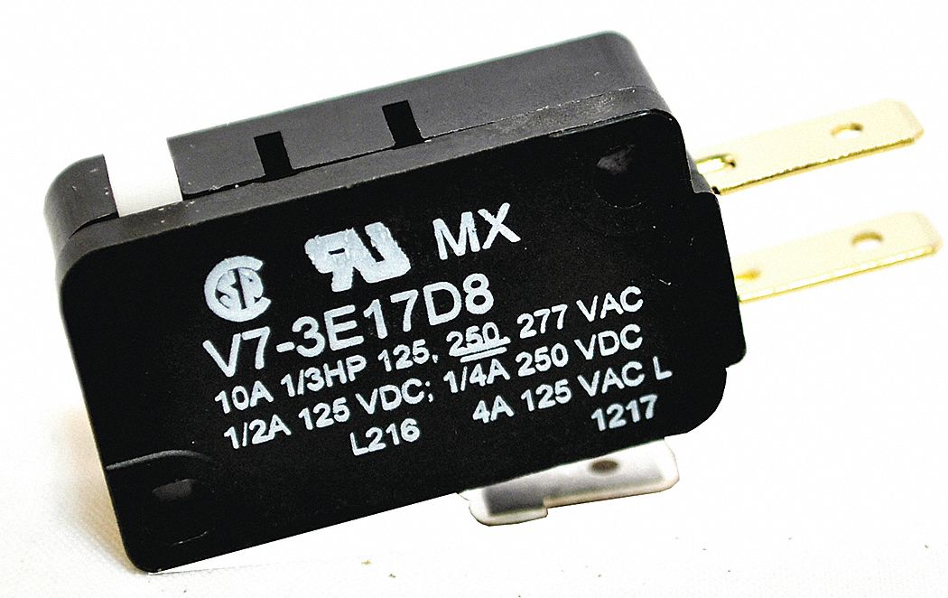 | Feature | Price For: Each Series: V-Basic Height: 0.63" Length: 1.14" Housing Material: PCT Polyester Thermoplastic Item: Miniature Snap Action Switch Terminal Type: Quick Connect Depth: 0.4" Max. Pretravel: 0.047" Actuator Length: Not Applicable Current Rating: 10A Mounting Dimension: 0.41 x 0.87" Centers Standards: UL, CSA, ENEC |