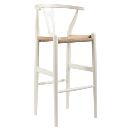 <br /> <b>Wholesale Interiors Mid-Century 40.75" Wood Modern Wishbone Stool:</b> <ul> <li>Solid wood frame with white finish</li> <li>Unfinished natural hemp cord seat</li> <li>Mid-century chair inspired</li> <li>30-day limited warranty</li> <li>Dimensions: 70.80"L x 17.30"W x 19.50"H</li> </ul>