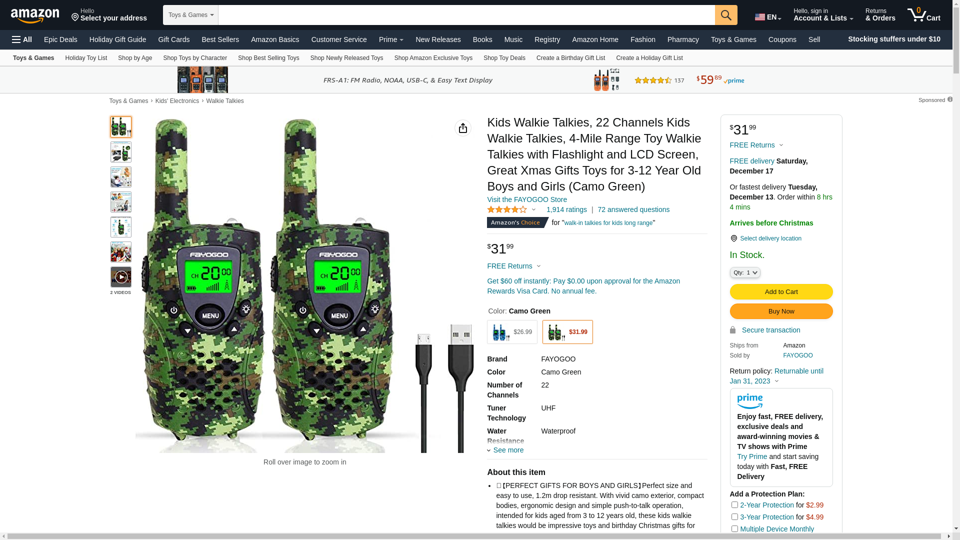 Get endless entertainment for the girls with these small walkie talkies! <br> If you are looking for something for the kids, these walkie talkies are something that they will go nuts over. From outdoor adventures to indoor activities, kids enjoy using toy walkie talkies as part of their role play and pretend play wherever they are!<br> Ideal Gift Designed for kids: <br> FAYOGOO walkie talkies is the best choice for the birthday gift, holiday gift or visit gift. The best choice for you to send it to your daughter, grandchild or others. Whether you are trying to keep an eye on your child or your little one is just playing these, it is amazing toys for girls.<br> - Small and Lightweight, Ergonomic Design for a firm grip, 2 x free hanging straps included<br> - Keypad Lock Feature to prevent accidental switches<br> - Hands-free Operation (VOX)<br> Convenient 2-way radio features:<br> - Up to 3 miles Long Transmitting Range in open field and 1/2 to 1 mile range in residential area.<br> - Equipped with 22 channels, reinforced by 38 CTCSS sub-codes to protect your privacy.<br> - Clearer Communication guaranteed by auto-squelch technology.<br> - Backlit LCD display, auto scan and monitor features<br> - Battery saving function, battery indicator, low battery alert<br> - Key tones, adjustable volume, fun "roger beep" when stop transmitting<br> - You can communicate with each other on different sets<br> - Built in flashlight. Not waterproof<br> Package Contents:<br> 2 x Walkie Talkies with belt clips<br> 1 x User Manual