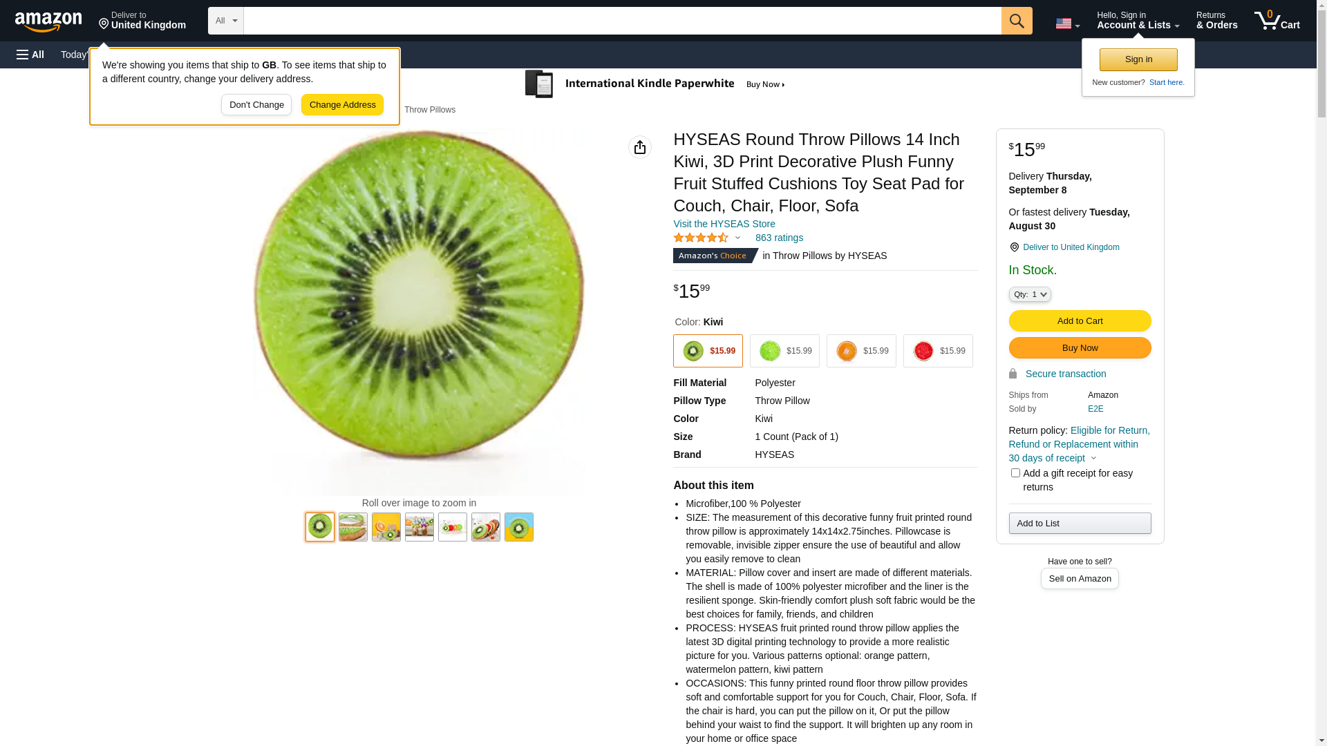 HYSEAS Round Throw Pillows 14 Inch Kiwi, 3D Print Decorative Plush Funny Fruit Stuffed Cushions Toy Seat Pad for Couch, Chair, Floor, Sofa: Maxedbuy.com