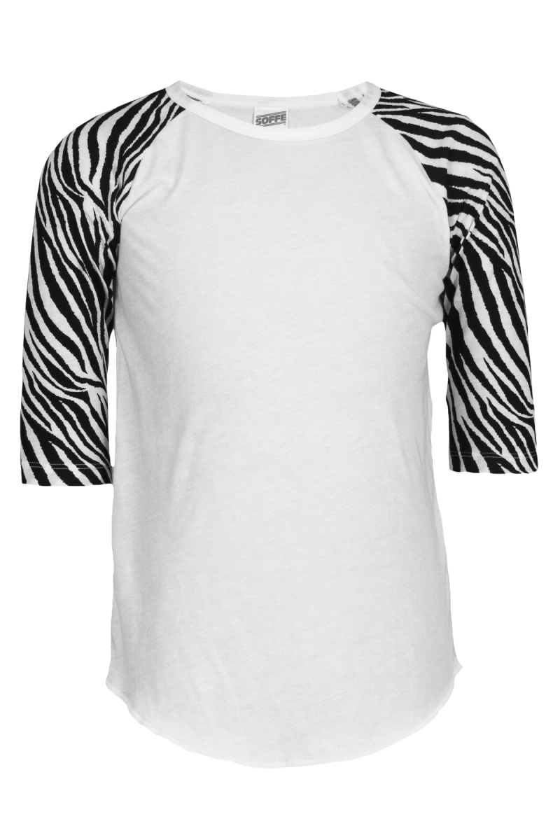 Soffe 2702GZ1ALXLG 3.0 oz Sleeve Baseball Jersey Tee Shirt for Girl, White & Zebra - Extra Large