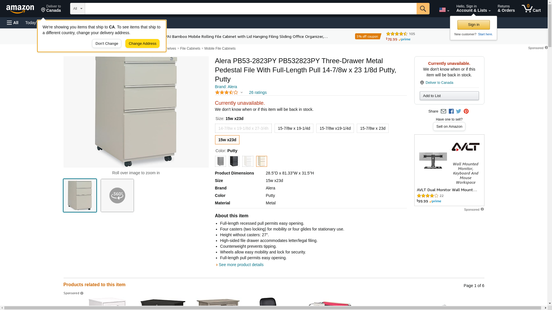 Alera PB53-2823PY Three-Drawer Metal Pedestal File With Full-Length Pull 14-7/8w x 23 1/8d Putty, Putty