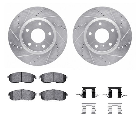 Dynamic Friction Company Front Brake Rotors Drilled and Slotted Silver with 5000 Euro Ceramic Brake Pads includes Hardware - 7612-68000