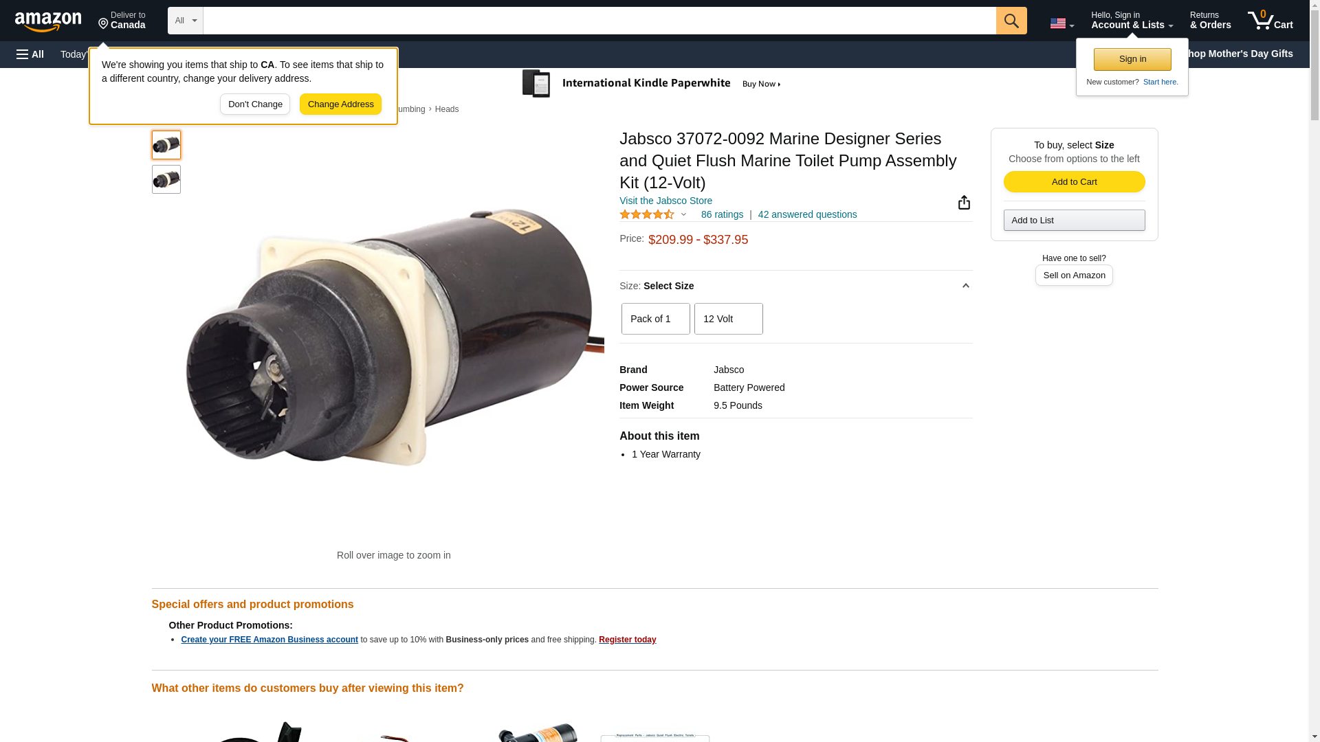 Jabsco 37072-0092 Marine Designer Series and Quiet Flush Marine Toilet Pump Assembly Kit (12-Volt)