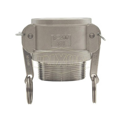 <p><strong>Dixon, G125-B-SS, 1-1/4" 316 Investment Cast Stainless Steel Global Cam & Groove Type B Coupler X Male NPT</strong></p><p><strong>Applications</strong></p><ul><li>Designed for use with liquids</li></ul><p><strong>Specifications</strong></p><ul><li>Designed to interchange with all products produced to A-A-59326D</li></ul><p><strong>Features</strong></p><ul><li>Made to Dixon specifications and branded Dixon</li></ul><p><strong>Construction</strong></p><ul><li>Buna Seals</li></ul><p><strong>How it works</strong></p><ul><li>To make a connection, simply slide the adapter into the coupler and with normal hand pressure, press the cam levers down.</li><li>Uncoupling is as quick and simple as coupling. Just lift the cam arms and remove the adapter.</li></ul><p><strong>Safety notes</strong></p><ul><li>Under no circumstances should cam and groove couplings be used for compressed air or steam service!</li><li>Pressure rating recommendations are based on the use of mating Dixon fittings at ambient temperature 70°F with a standard seal installed.</li></ul>