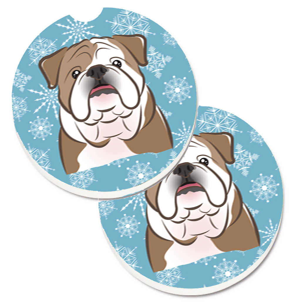 Carolines Treasures BB1653CARC Snowflake English Bulldog Set of 2 Cup Holder Car Coaster