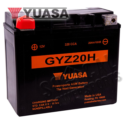 - The highest CCA motorcycle battery, Yuasa GYZ batteries feature taller plates for extra surface area creating more power: up to 500 CCA and 32 Ah to power more accessories