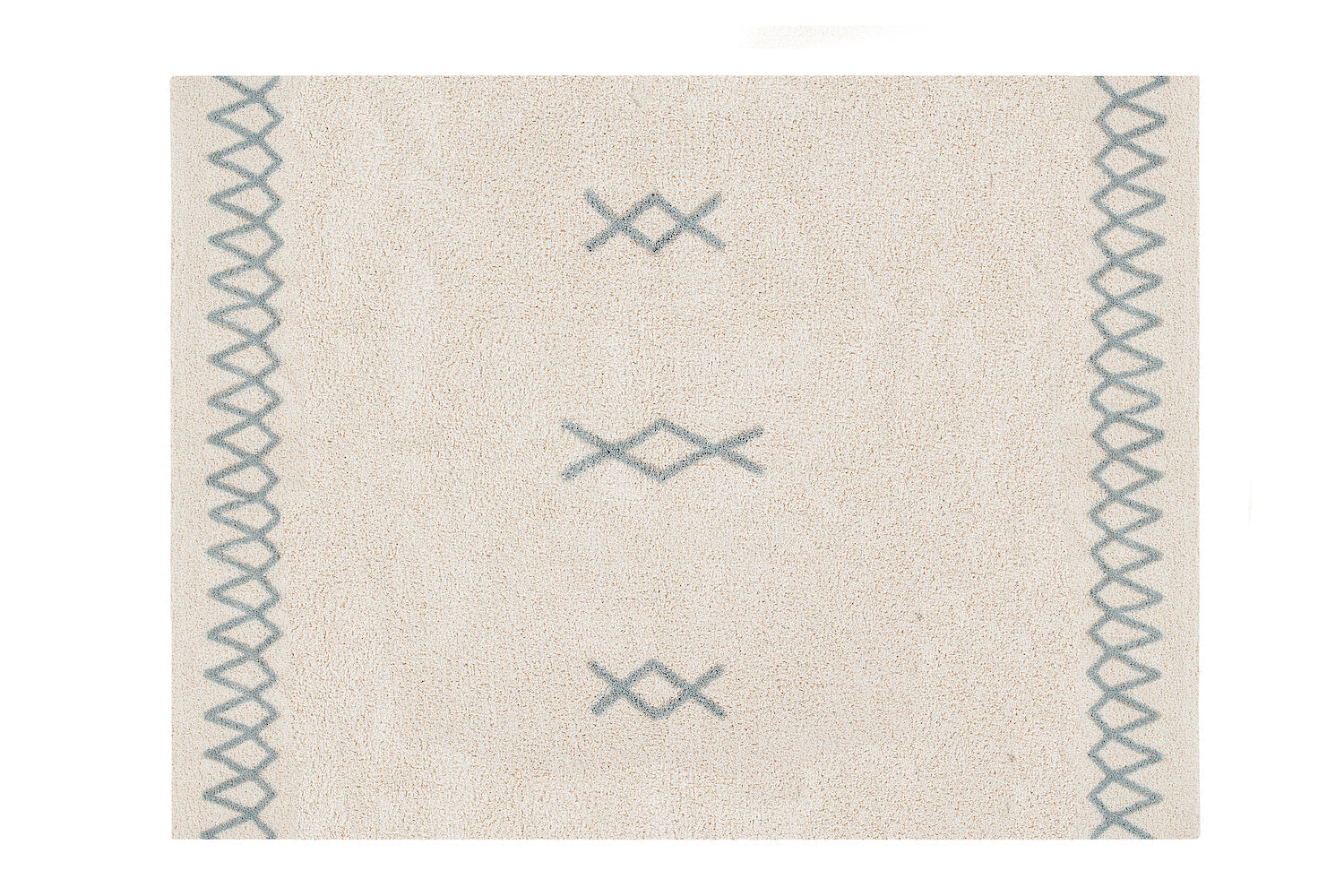 Lorena Canals-Washable Rug for Kids' Room Atlas in Color Natural/Blue. Handmade in Rectangular Shape with Short Pile Natural Cotton and Non-Toxic Dyes- Size: 5' 7" x 8'-Collection Back-to-Basics