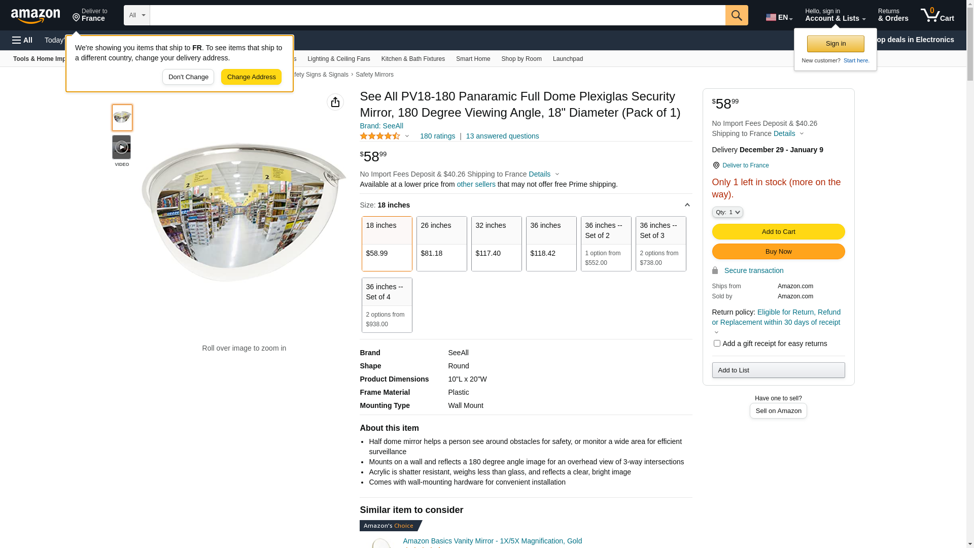 See All PV18-180 Panaramic Full Dome Plexiglas Security Mirror, 180 Degree Viewing Angle, 18" Diameter (Pack of 1)