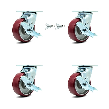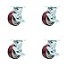 Polyurethane on Aluminum Swivel Top Plate Caster Set 4 w/5" x 2" Maroon Wheels-Includes 2 Swivel with Brakes and Bolt on Swivel Locks & 2 Swivel with Brakes-3600lbs Total Capacity-Service Caster Brand