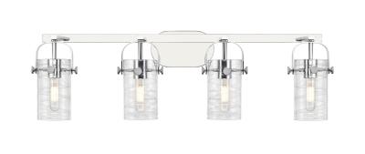 Innovations Lighting 423-4W-PC-G423-7DE Pilaster II Cylinder - 4 Light Bath Vanity in Industrial Style-10.38 Inches Tall and 34.88 Inches Wide, Finish Color: Polished Chrome, Glass Color: Deco Swirl