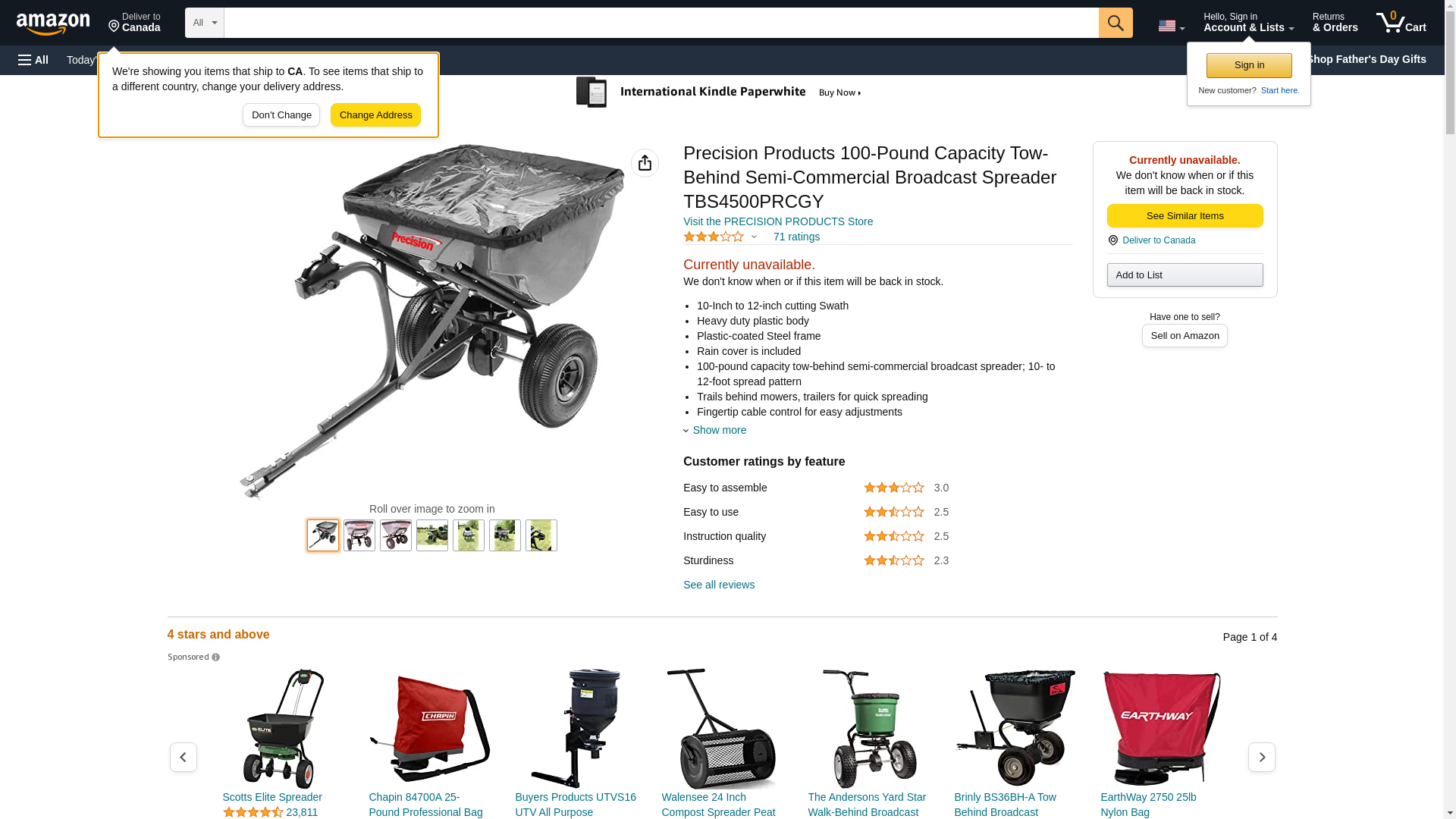 Precision Products 100-Pound Capacity Tow-Behind Semi-Commercial Broadcast Spreader TBS4500PRCGY