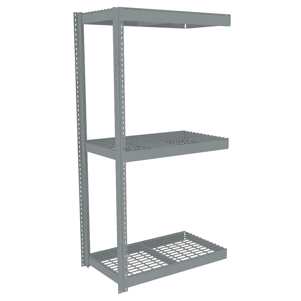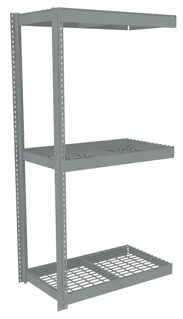Boltless Shelving: Add-On, Heavy-Duty, 42 in x 18 in, 84 in Overall Ht, 3 Shelves, Steel<br /> This listing is for each.<br /> This item requires special shipping, additional charges may apply.