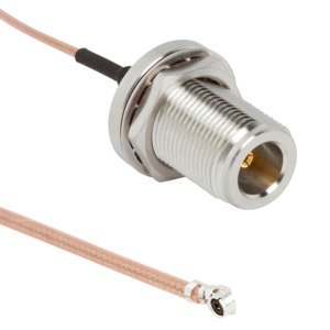 Amphenol RF - 095-909-155-001 - N-Type Bulkhead Jack to AMC Plug on RG-178 cable, 50 mm - Allied Electronics & Automation, part of RS Group