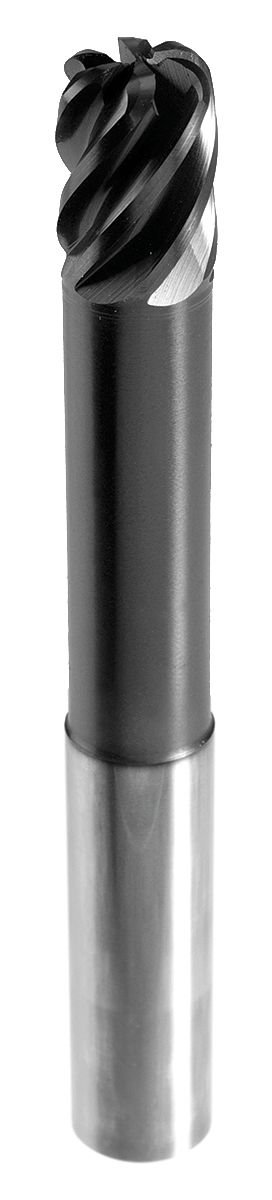 Routing End Mill Titanium Finisher Long Length Necked High Performance Number of Flutes 6 Single End Corner Radius End Style Center Cutting Type Right Hand Cut Carbide AlTiN Finish Dia 1/4 In Shank Dia 1/4 In Length of Cut 3/8 In Overall Length 4 In Neck Dia 0.236 In Neck Length 3 1/8 In Cut Angle 40 Deg Helix Angle 40 Deg Radius 0.0600 In For Machining Aerospace Materials Stainless Steels Nickel-Based Alloys And Titanium Alloys