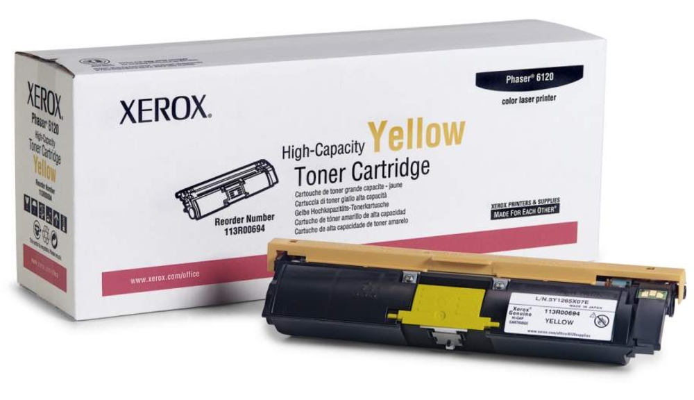 Genuine Xerox Yellow High Capacity Toner Cartridge for the Phaser 6120/6115MFP, 113R00694