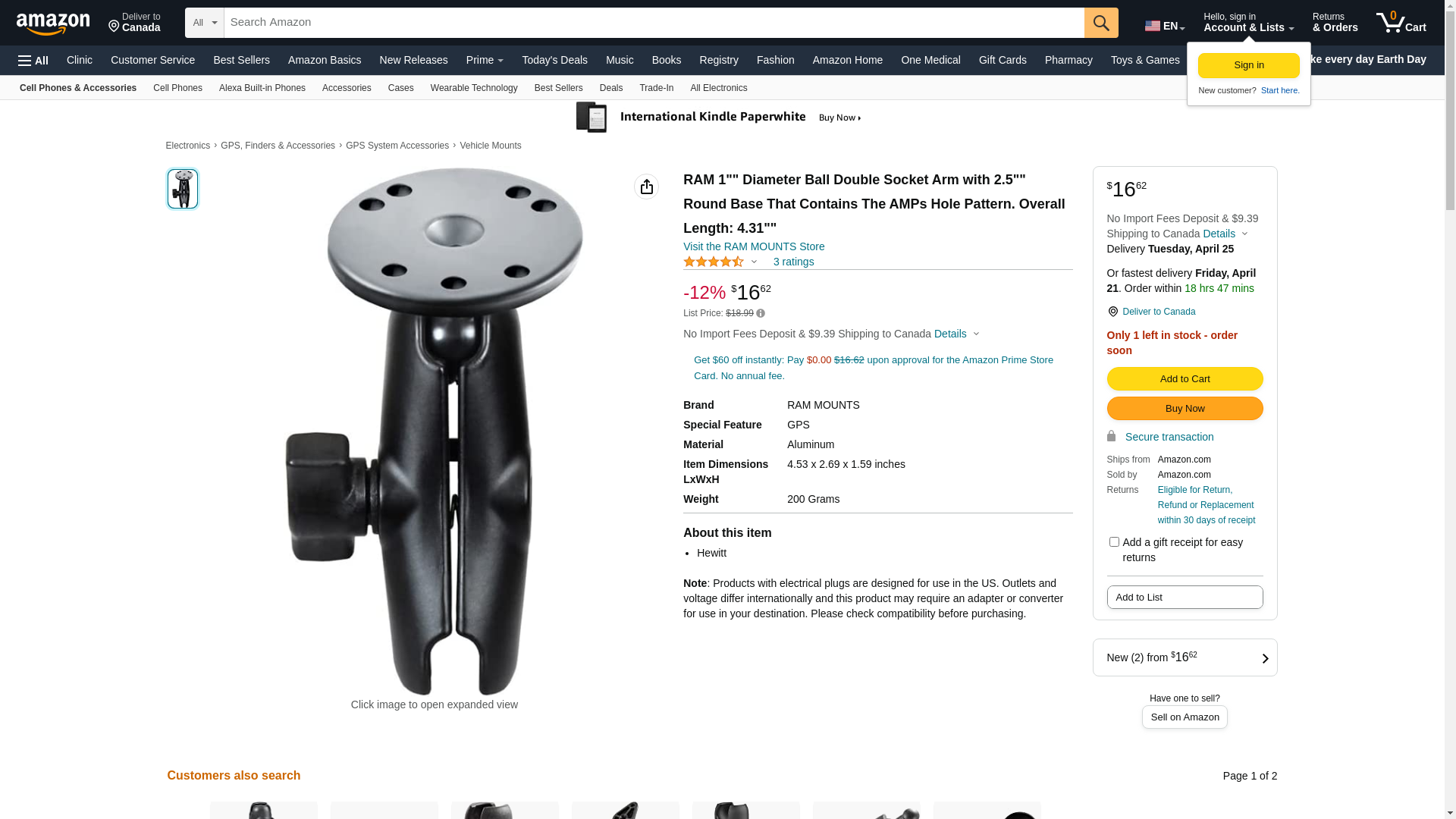 PRODUCT TITLE: RAM Mounting Systems RAM-B-103U RAM Mount Double Socket Arm w/2.5" Round Base SHORT DESCRIPTION: Ram Mount Double Socket Arm W/ 2.5" Round Base FULL DESCRIPTION: RAM 1" Diameter Ball Double Socket Arm with 2.5" Round Base that contains the AMPs Hole Pattern Part #: RAM-B-103U The RAM-B-103U consists of a 2.5" round base and double socket arm that will accept 1" ball bases. The round base contains pre-drilled holes, including the universal AMPS hole pattern. Designed into the mount is a 1" diameter patented rubber ball and socket system with adjustment points at both ends of the socket arm; this with a twist of the arm knob allows for you to maneuver the mount to your optimum viewing position. Material: Powder Coated Marine Grade Aluminum Ball Size: 1" Rubber "B" Ball Size Note: The "U" in the part number reflects product packaged in poly bag. BRAND: RAM Mounting Systems CWR ELECTRONICS PART #: 44211 MFGR PART #: RAM-B-103U CONDITION: NEW WEIGHT: 0.5 UPC: 793442926778 QTY ON HAND: 100 STOCK STATUS: Stocked ACCESSORIES INCLUDED: PRODUCT TYPE: Ram Mount Store | Surface Mount GOOGLE PRODUCT CATEGORY: Electronics > Gps Accessories SPECS: ANMS PART #: CWR-10124570