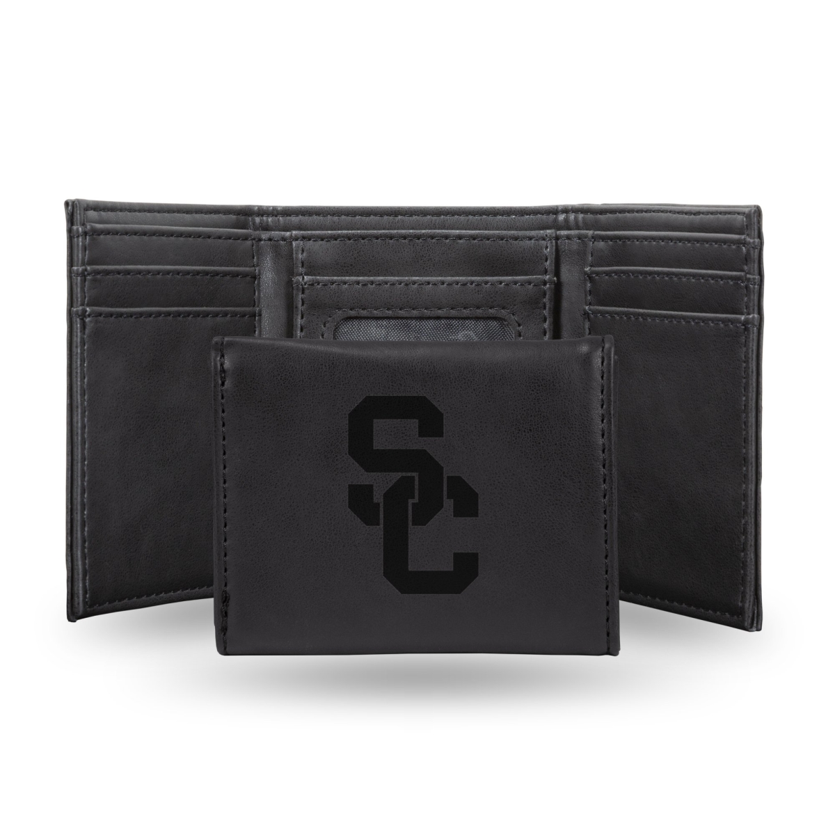 Rico LETRI290101BK NCAA Southern California Trojans Laser Engraved Black Trifold Wallet