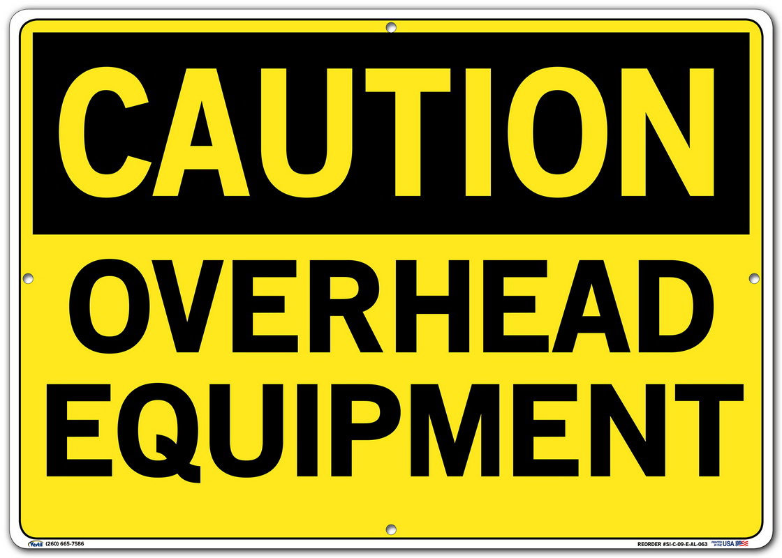 Vestil SI-C-09-E-AL-063 OVERHEAD EQUIPMENT Caution Sign, Aluminum, 0.063" Overall Size, 20.5" W x 14.5" H