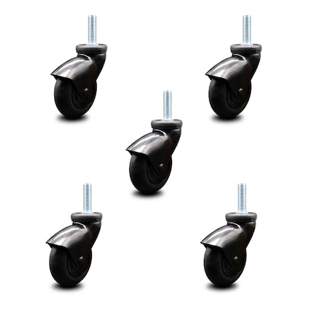 Service Caster - Black Hooded 3 Inch Swivel Neoprene Rubber Casters and 3/8 Threaded Stem - 550 lbs. Total Capacity - Set of 5
