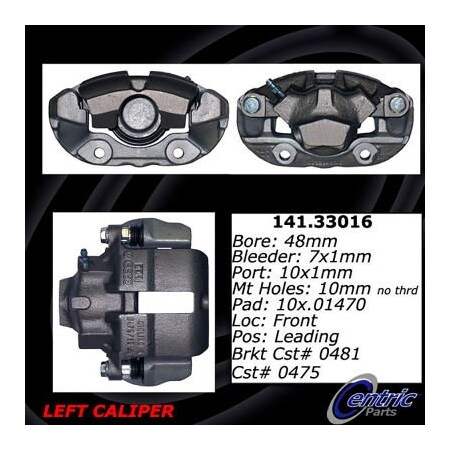 Centric Remanufactured Front Driver's Side Disc Brake Caliper 141.33016