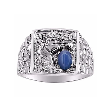 Diamond & Blue Star Sapphire Ring Sterling Silver or Yellow Gold Plated Silver Band