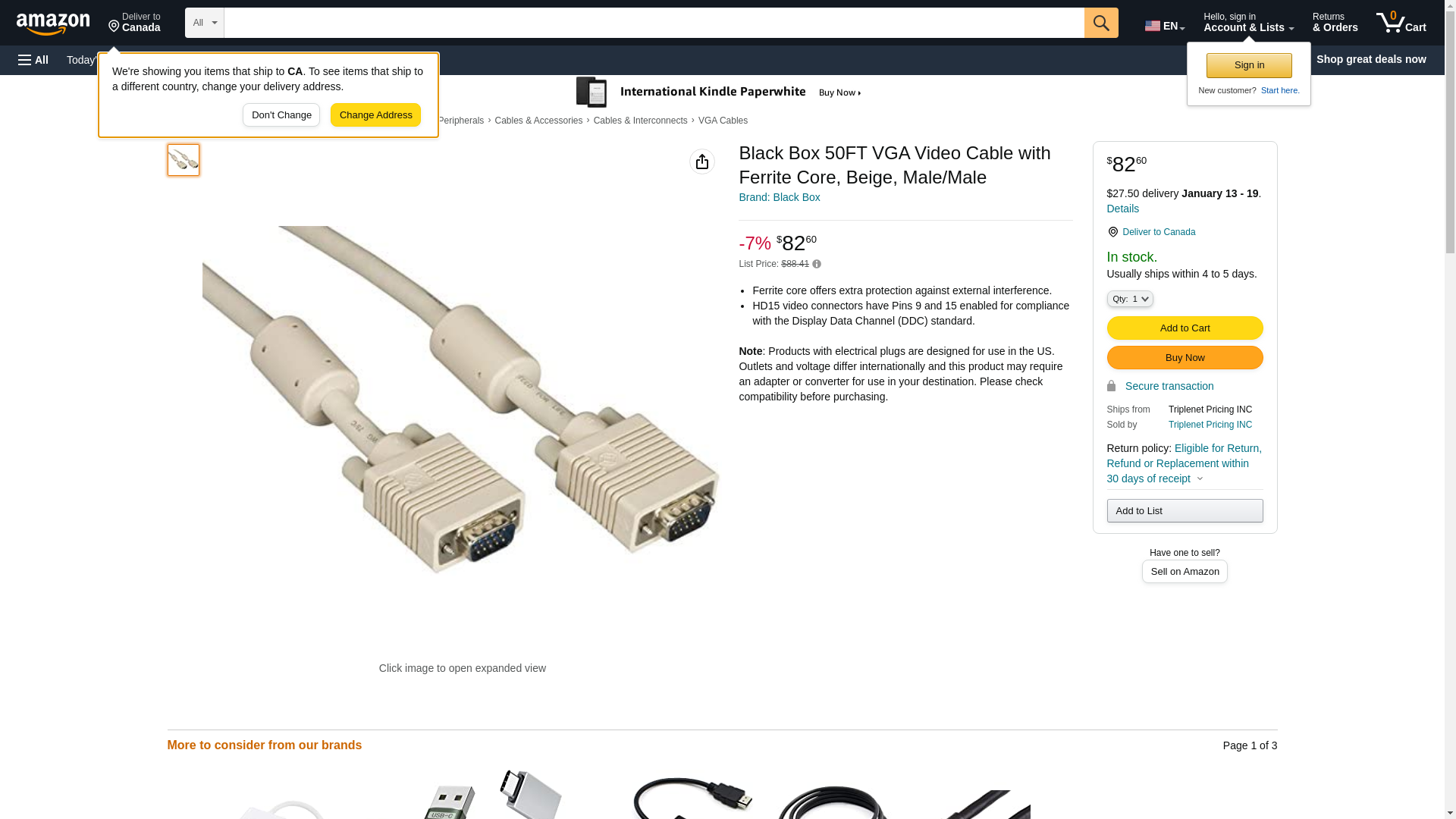 BlackBox, EVNPS06-0050-MM, VGA Video Cable with Ferrite Core, Beige, Male/Male, 50-ft. (15.2-m) A premium cable for superior video transmissions. Features: Ferrite core offers extra protection against external interference. HD15 video connectors have Pins 9 and 15 enabled for compliance with the Display Data Channel (DDC) standard. Guaranteed for life! Connect your monitor to video equipment for professional PC-based presentations. Features a tinned copper braid shield with an inner tape made of aluminum and Mylar , and a PVC jacket. Double shielded to extend monitor signals.