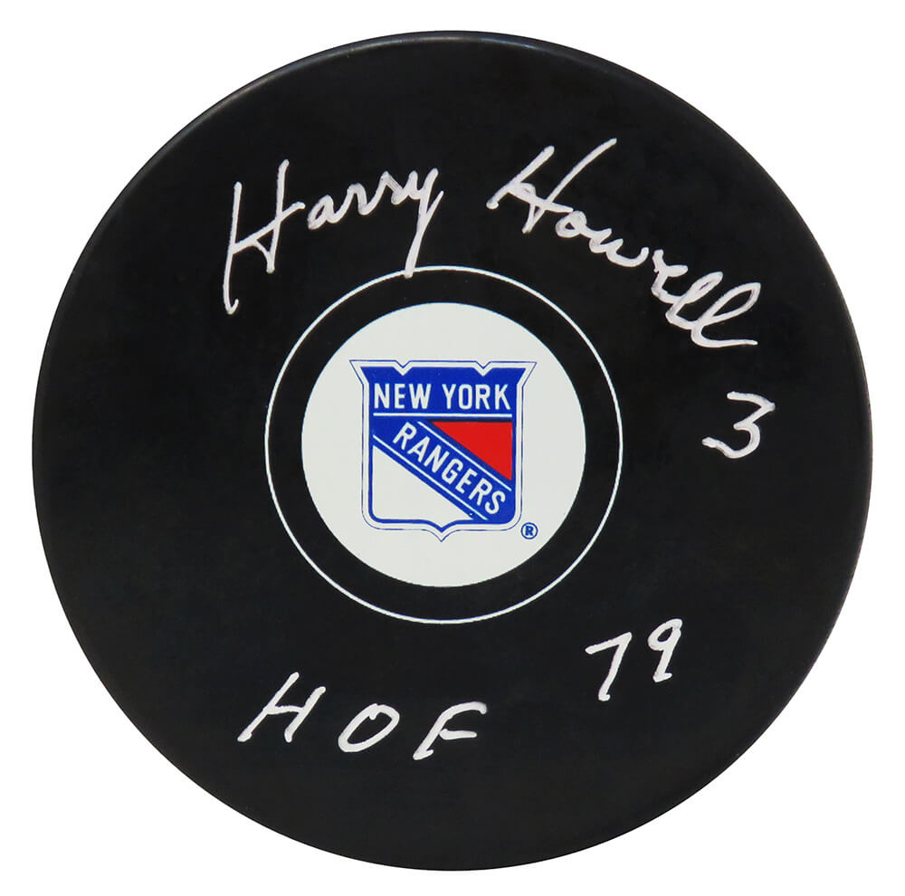 Schwartz Sports Memorabilia HOWPUC431 Harry Howell Signed New York Rangers Logo Hockey Puck with HOF-79