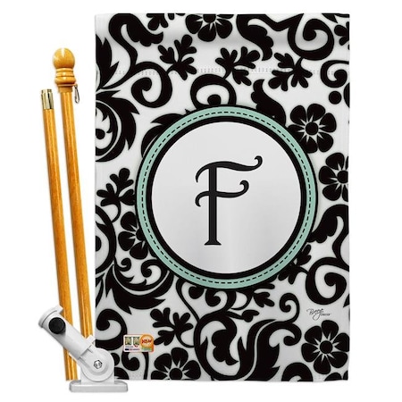 Breeze Decor HS130058-BO Damask F Initial Interests Simply Beauty Decorative Vertical House Flag Set, 28"x 40" w/Flagpole, Multi-Color