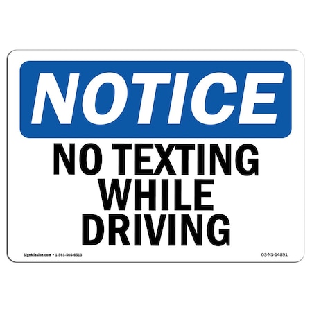 OSHA Notice Sign, No Texting While Driving, 10in X 7in Decal