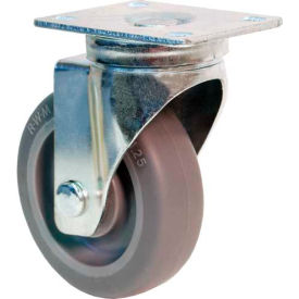 RWM Casters VersaTrac 27 Series Plate Caster, Swivel with Brake, Rubber Wheel, Ball Bearing, 250 lbs Capacity, 4" Wheel Dia, 1-1/4" Wheel Width, 5-1/4" Mount Height, 3-3/4" Plate Length, 2-5/8" Plate Width