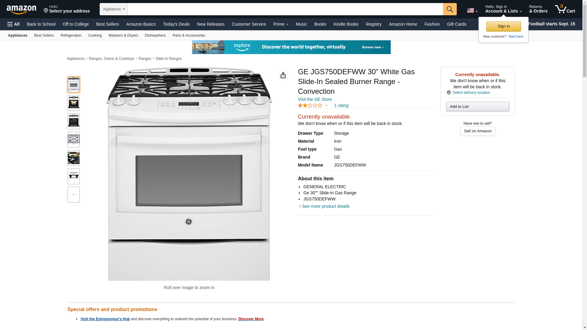 | Feature | GE GAS RANGEBRAND SOURCE ONLY JGS750DEFWW |