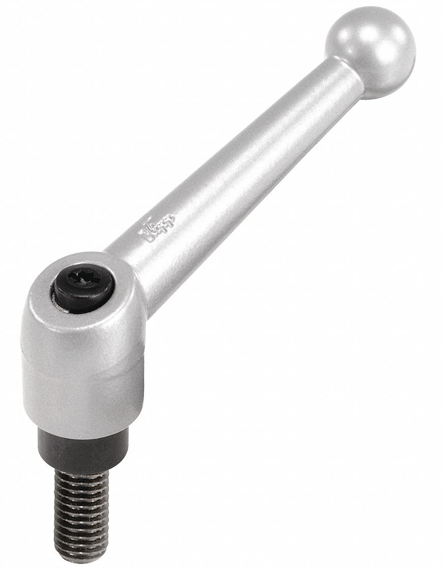 Kipp 06430-2103X35 Zinc/Steel Adjustable Handle with M10 External Thread, Classic Ball Style, Metric, Silver Metallic Powder-Coated Finish, Steel Components, Size 2, 35 mm Screw Length