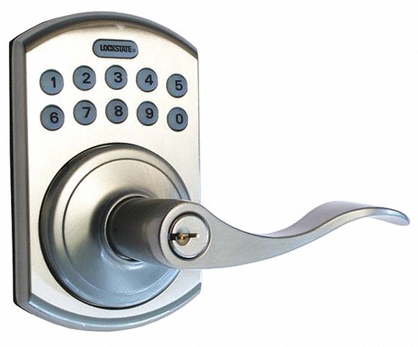 LockState LS-L550-SN Electronic Keypad Lever Door Lock Satin Nickel Boulder Style