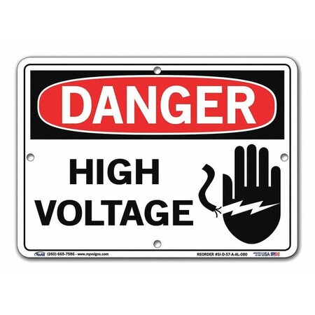 Vestil SI-D-57-A-AL-080 HIGH VOLTAGE Danger Sign, Aluminum, 0.080" Overall Size, 10.5" W x 7.5" H