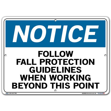 Vestil SI-N-53-C-AC-130 Notice Sign, "Follow Fall Protection Guidelines When Working Beyond This Point", 10.5" Height, 14.5" Wide, 0.13" Length Composite